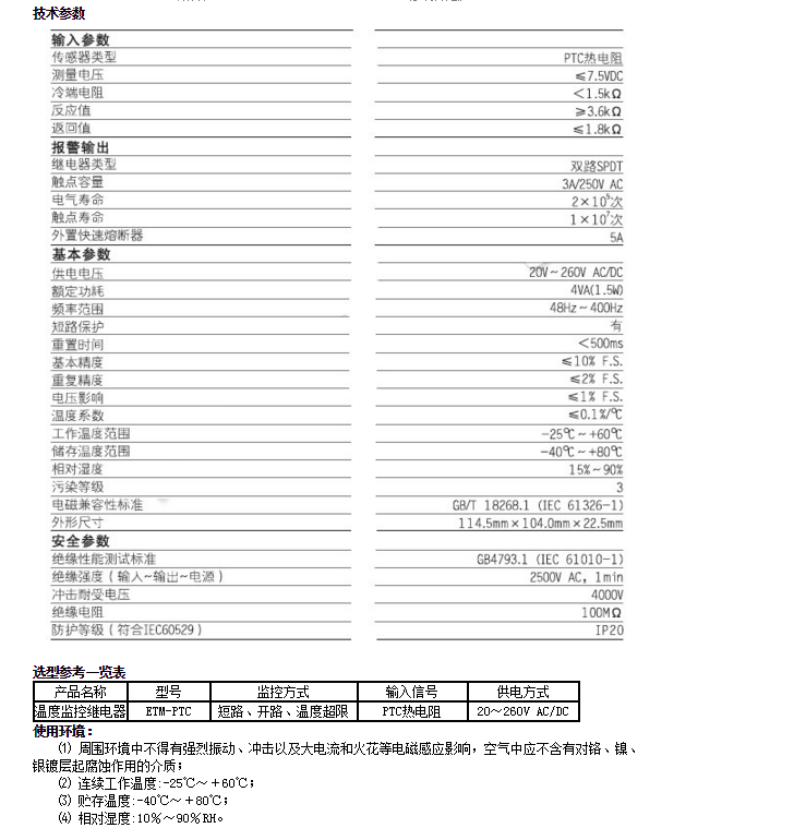 型號: ETM-PTC,溫度監(jiān)控繼電器