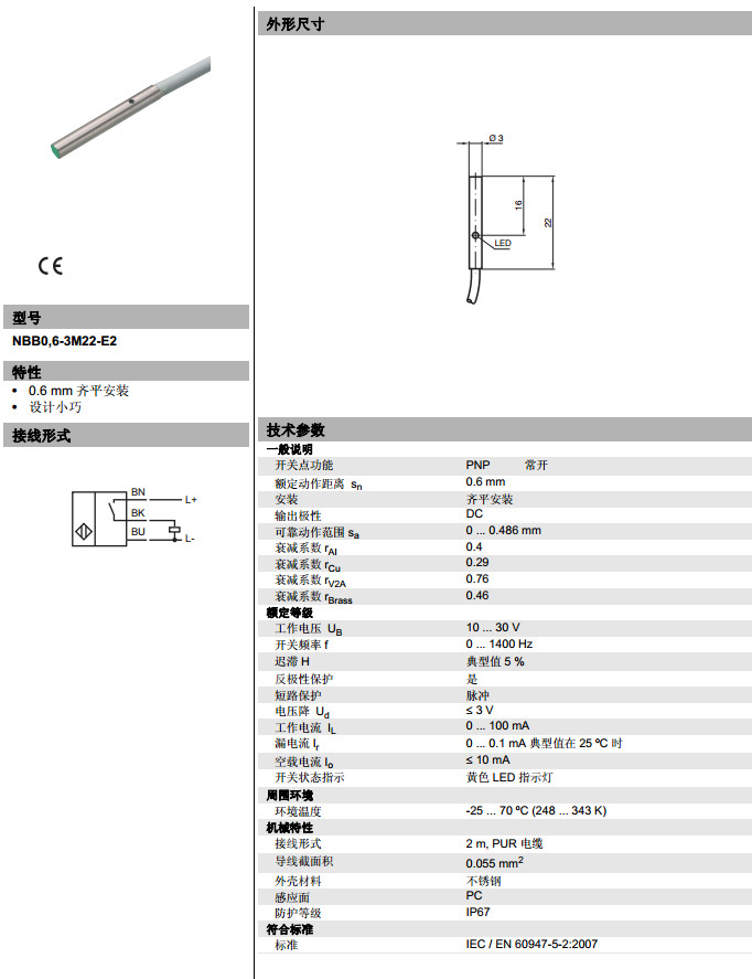 型號: NBB0,6-3M22-E2電感式接近開關(guān)