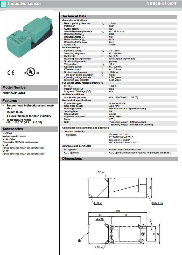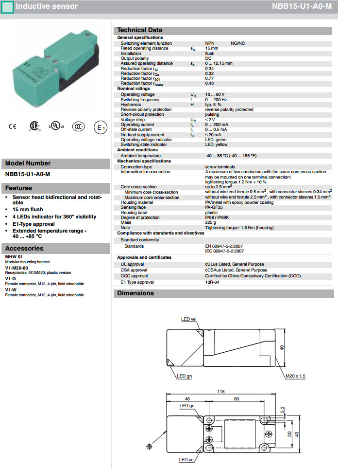 型號: NBB15-U1-A0-M,NBB15-U1-A0-T