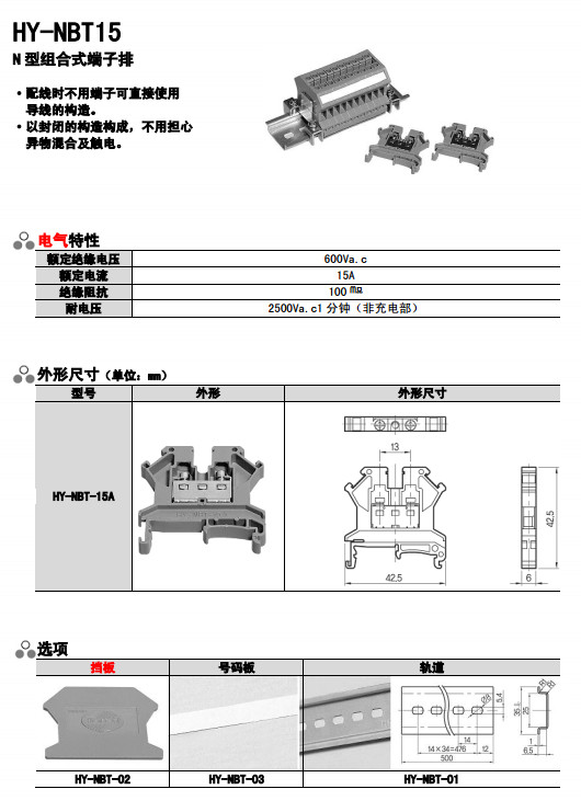 產(chǎn)品: 瀏覽次數(shù):656HY-NBT-15A,N型組合式端子排