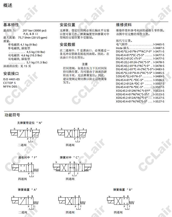 DG4S4,DG4S2,DG4S4-0133N-50,DG4S4L-0133N-50,DG4S4W-0133N-50,電磁方向控制閥