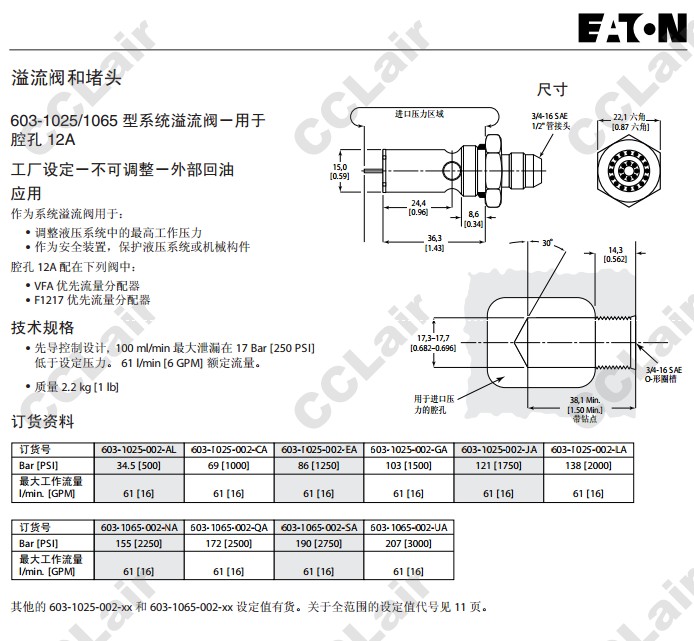 603-1025,603-1065,603-1025-002-JA,603-1065-002-UA,威格士-Vickers,溢流閥