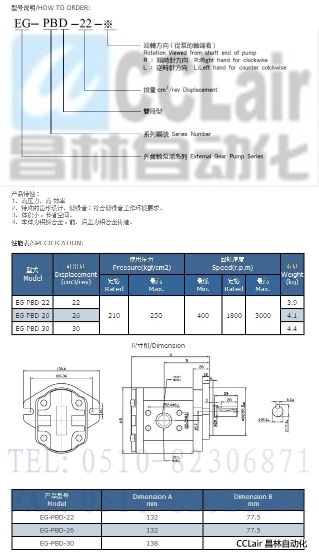 EG-PBD-22,EG-PBD-26,EG-PBD-30,外齒輪泵浦