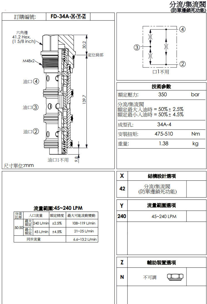 詳細(xì)信息 FD-34A-42-240-N,winner分流/集流閥