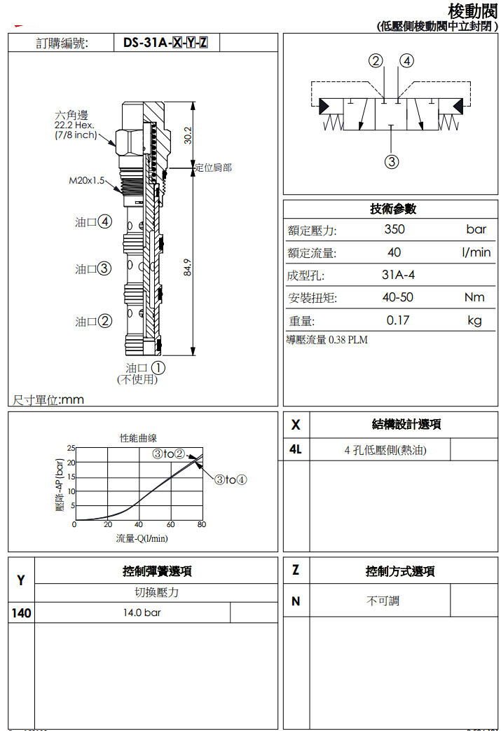 詳細(xì)信息 DS-31A-4L-140-N,winner梭動(dòng)閥