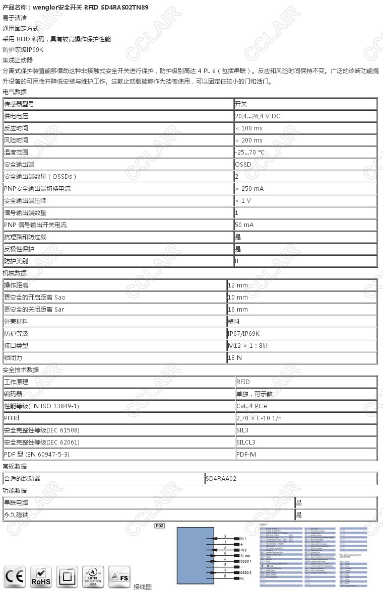 詳細(xì)信息 SD4RAS02TN89,wenglor安全開關(guān)RFID