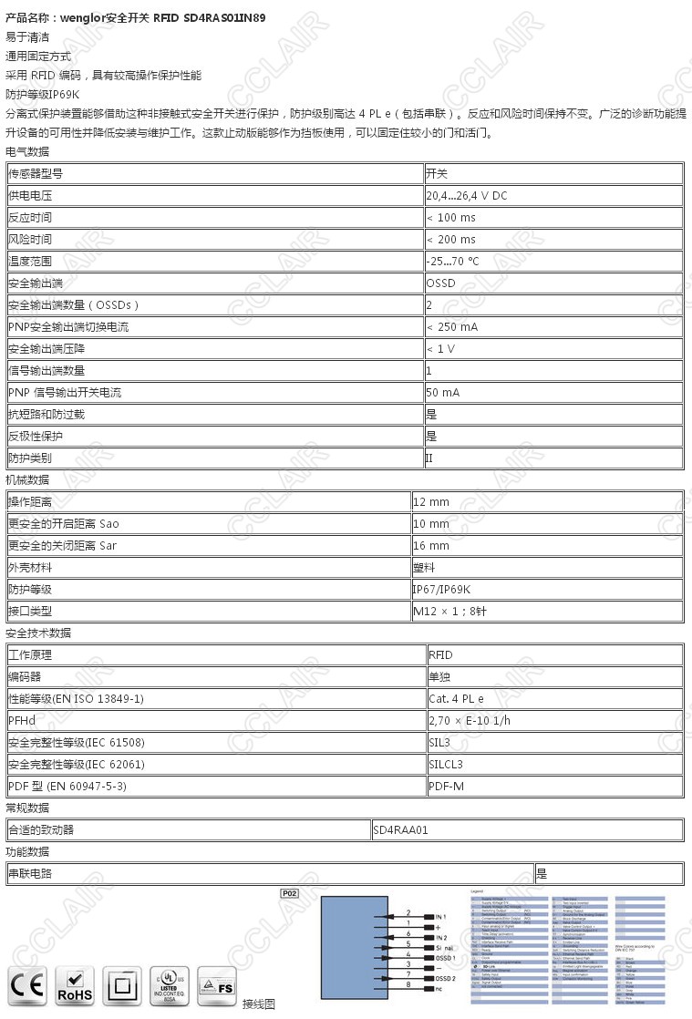 SD4RAS01IN89,wenglor安全開關RFID