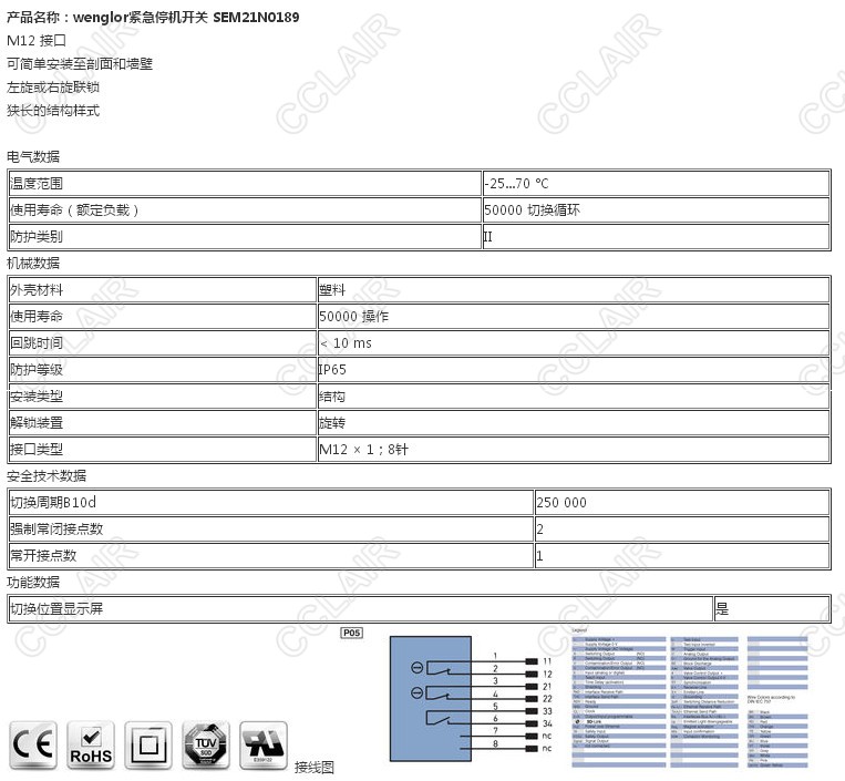 詳細(xì)信息 SEM21N0189,wenglor緊急停機(jī)開關(guān)