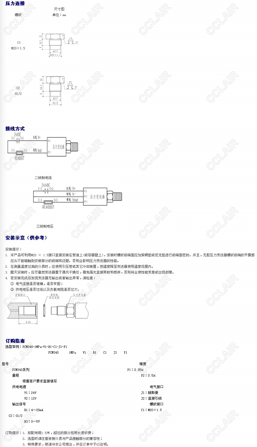 PCM340-1MPa-V2-B2-C1,PCM340-1MPa-V1-B3-C1,PCM340-1MPa-V2-B3-C1,變送器