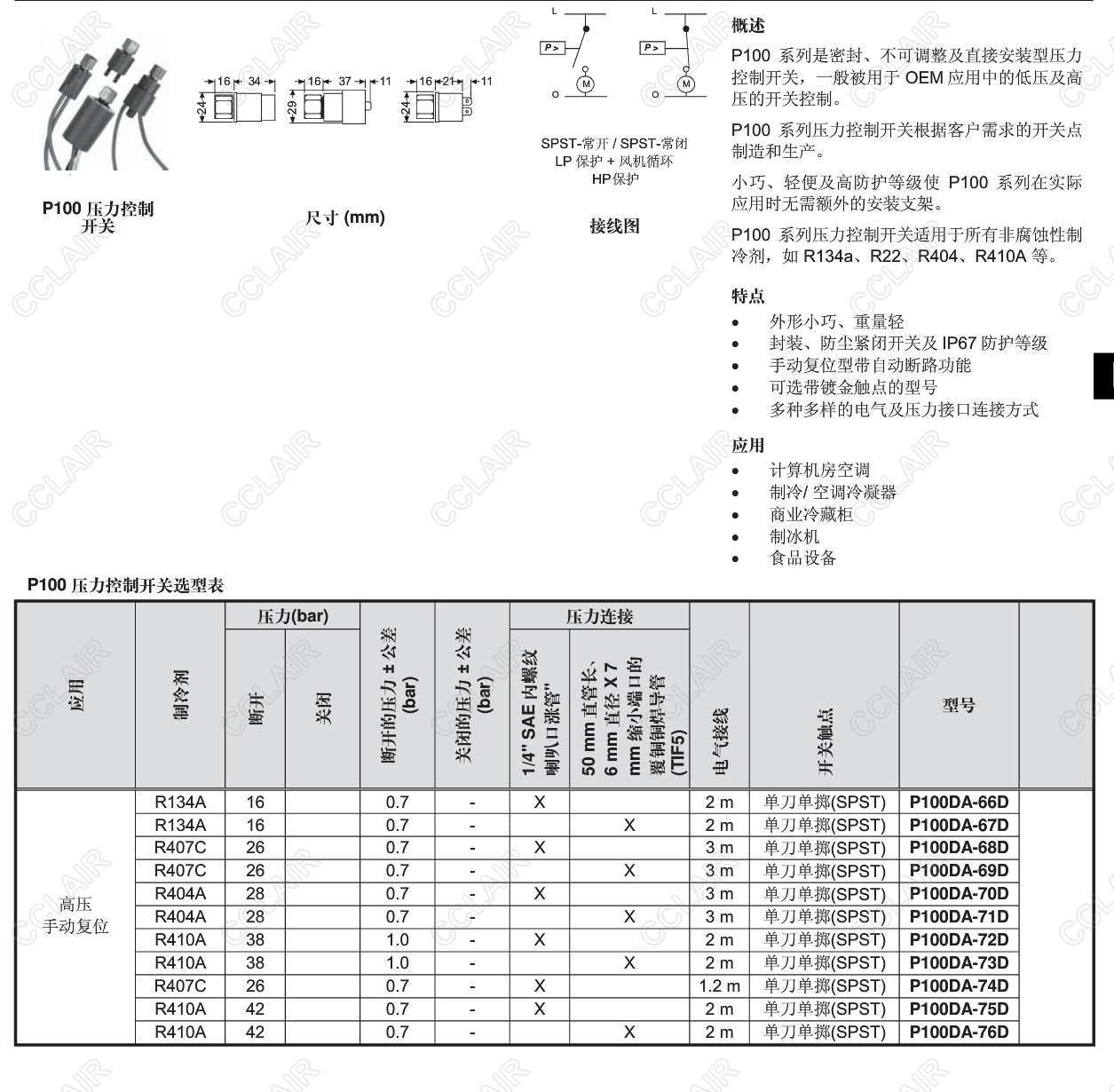 詳細信息 P100AP-300D,P100AP-301D,P100AP-302D,P100AP-303D,P100AP-304D,P100,直接安裝壓力控制開關(guān)