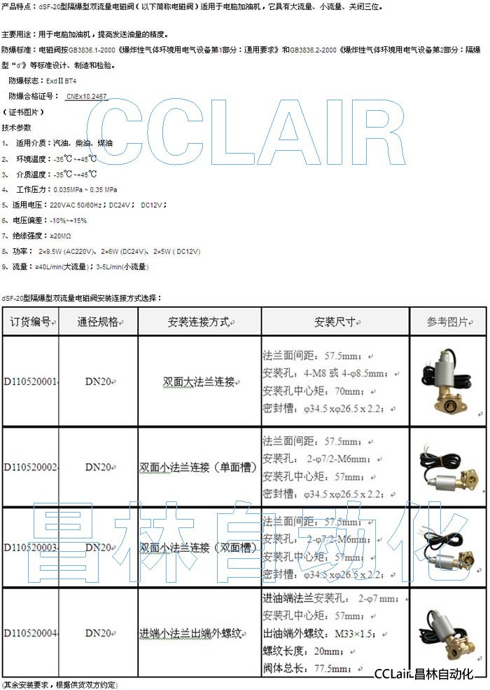 詳細(xì)信息 DSF-20,D110520001,D110520002,D110520003,D110520004,隔爆型雙流量電磁閥