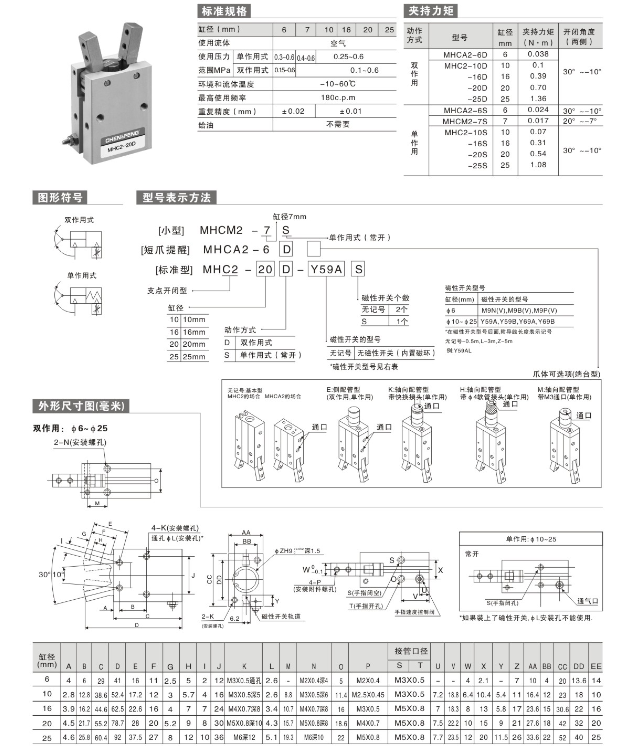 氣動手指氣缸 MHC2-10D,MHC2-16D,MHC2-20D,MHC2-25D,MHC2-32D,MHC2-40D,MHC2-10S,MHC2-16S,MHC2-20S, MHC2-25S,MHC2-32S,MHC2-40S,MHC2-10D-S,MHC2-16D-S,MHC2-20D-S,MHC2-25D-S,MHC2-32D-S, MHC2-40D-S,MHC2-10S-S,MHC2-16S-S,MHC2-20S-S,MHC2-25S-S,MHC2-32S-S,MHC2-40S-S