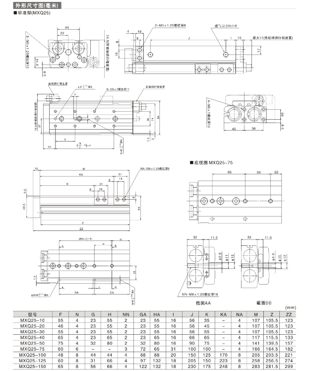 高精密度滑臺氣缸 MXQ6-10BT,MXQ6-20BT,MXQ6-30BT,MXQ6-40BT,MXQ6-50BT,MXQ8-10BT,MXQ8-20BT,MXQ8-30BT, MXQ8-40BT,MXQ8-50BT,MXQ8-75BT,MXQ12-10BT,MXQ12-20BT,MXQ12-30BT,MXQ12-40BT,MXQ12-50BT