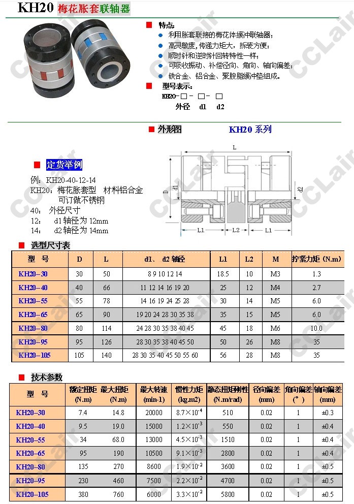 KH20-30,KH20-40,KH20-55,KH20-65,KH20-80,KH20-95,KH20-105,鋁合金梅花脹套聯(lián)軸器 |