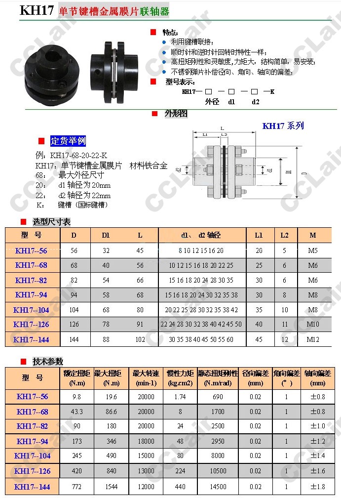 KH17-56,KH17-68,KH17-82,KH17-94,KH17-104,KH17-126,KH17-144,單節(jié)鍵槽金屬膜片聯(lián)軸器 詳細(xì)信息 KH17-56,KH17-68,KH17-82,KH17-94,KH17-104,KH17-126,KH17-144,單節(jié)鍵槽金屬膜片聯(lián)軸器
