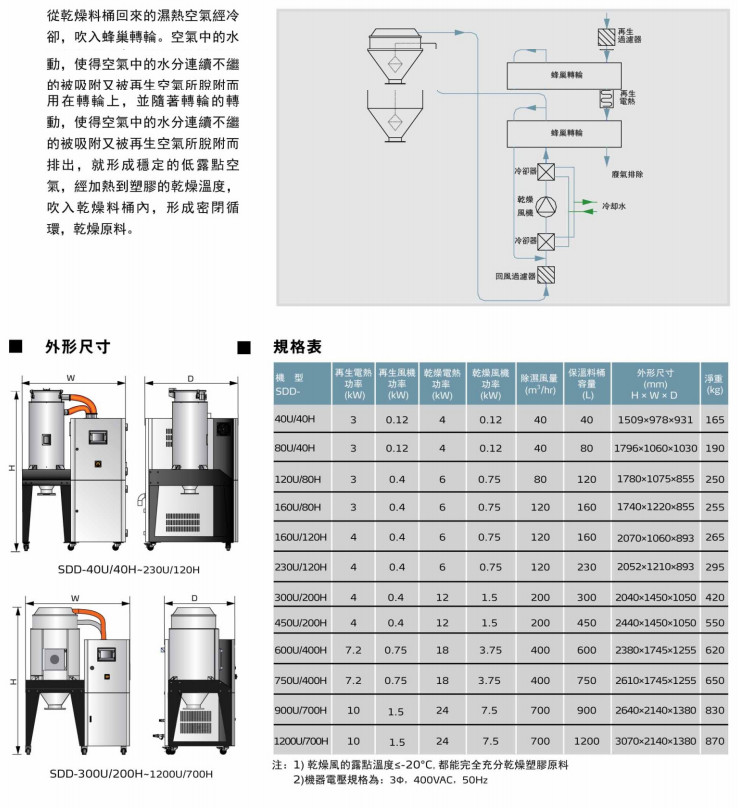詳細(xì)信息 SDD-40U/40H,SDD-80U/40H,SDD-120U/80H,SDD-160U/80H,SDD-160U/120H,歐化除濕干燥機(jī)送料組合