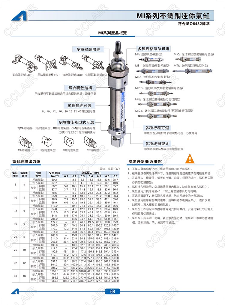 MI8*10CA,MIC16*10CA,MSI8*10CA,MTI10*10CA,MID8*10,MIJ8*10,MICD16*10,AIRTAC臺灣不銹鋼迷你氣缸