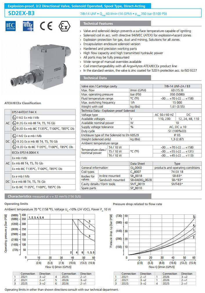 首頁 > 產(chǎn)品&解決方案 > SD2EX-B3/H2D21,SD2EX-B3/H2D25,SD2EX-B3/H2D26,ARGO電磁換向閥