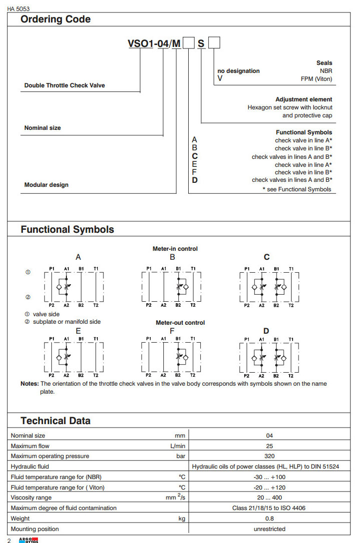 VSO1-04/MA,VSO1-04/MB,VSO1-04/MC,VSO1-04/ME,VSO1-04/MD,ARGO雙單向節(jié)流閥