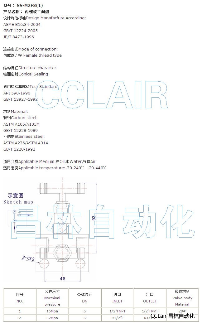 SS-M2F8(1),內(nèi)螺紋二閥組