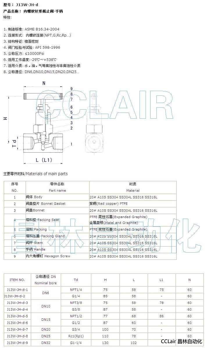 J13W-JH-d-1,J13W-JH-d-2,J13W-JH-d-3,J13W-JH-d-4,內螺紋針形截止閥-手柄