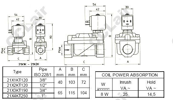 21X1KT120,21X2KT120,21X3KT190,21X4KT250,意大利ODE先導(dǎo)膜片式不銹鋼電磁閥