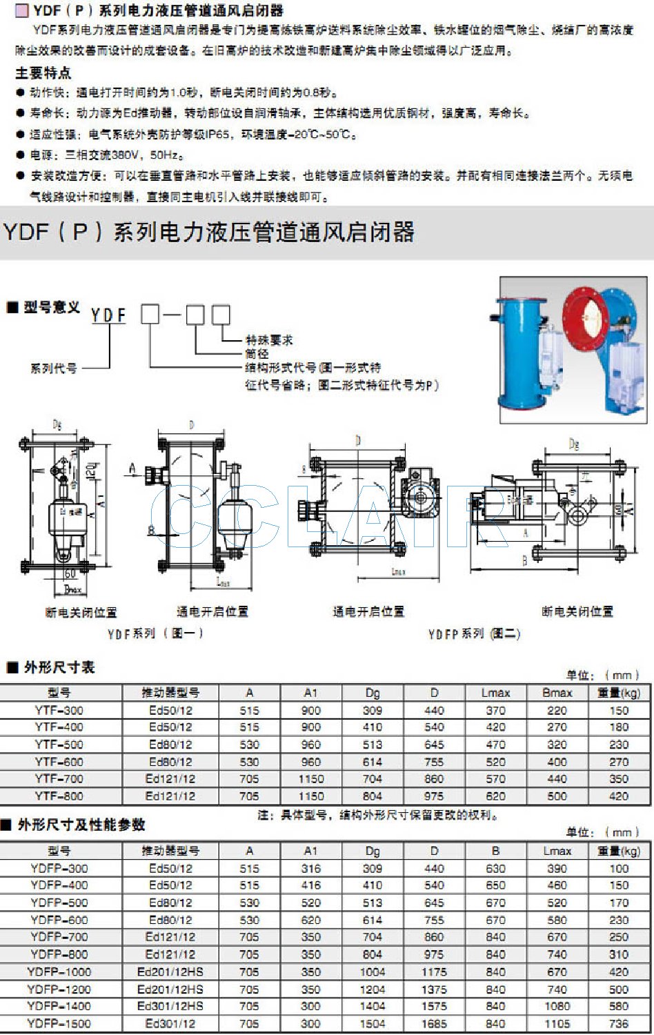 YDFP-800,YDFP-1000,YDFP-1200,YDFP-1400,YDFP-1500,電力液壓管道通風(fēng)啟閉器