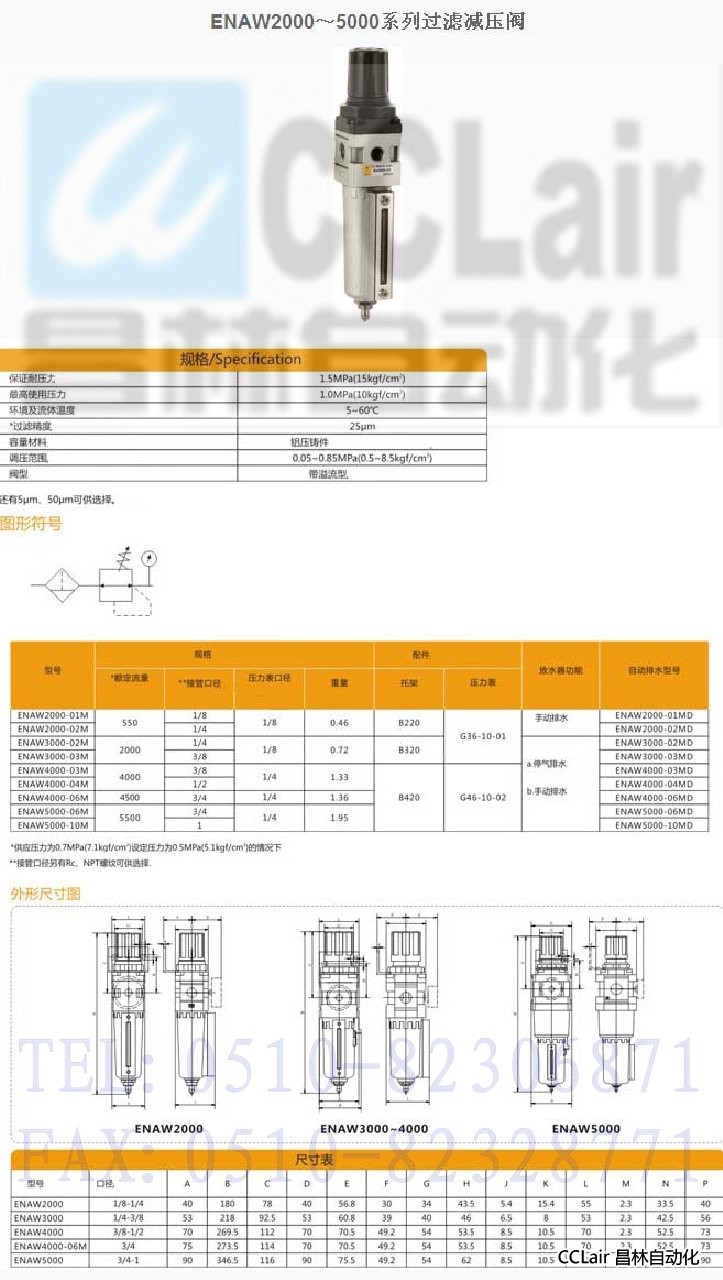 詳細信息 ENAW2000,ENAW3000,ENAW4000,ENAW4000-06M,ENAW5000,過濾減壓閥