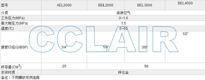 詳細(xì)信息 AEL2000,AEL3000,AEL4000,BEL2000,BEL3000,BEL4000,氣源處理件