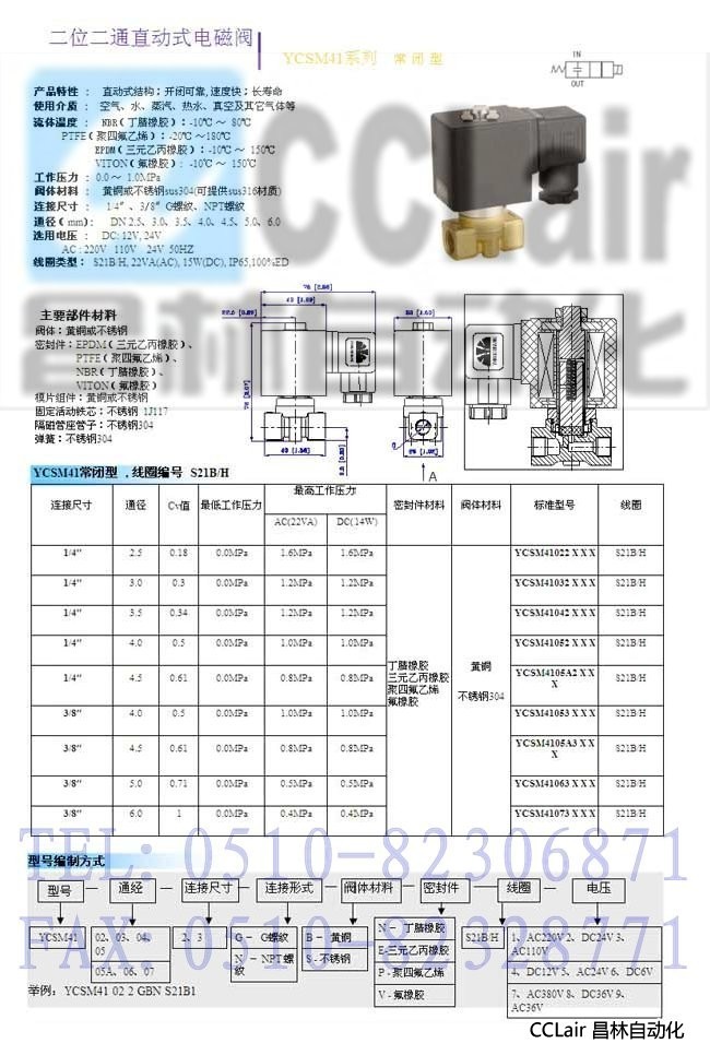 YCSM41022,YCSM41023,YCSM41032,YCSM41033,YCSM41042,二位二通直動式電磁閥