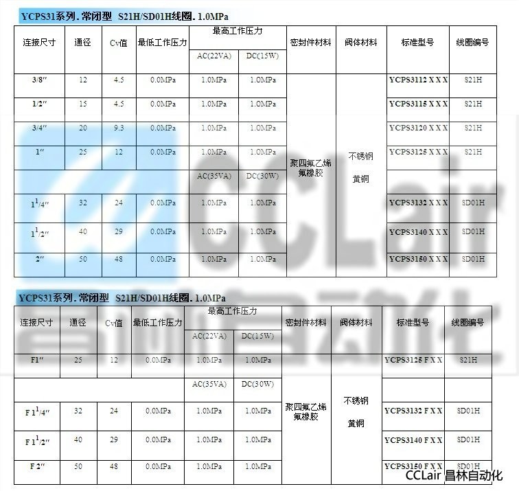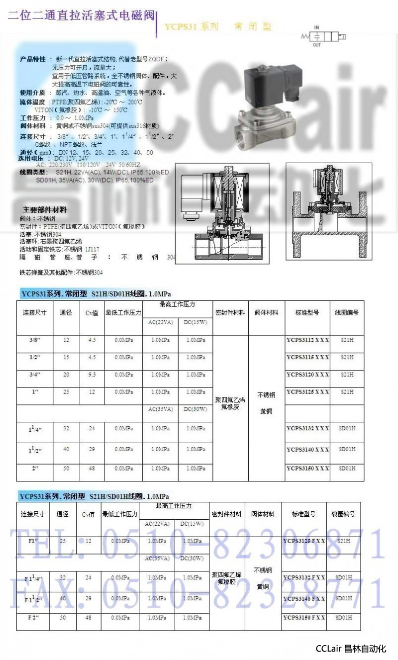 YCPS3112,YCPS3115, YCPS3120, YCPS3125, YCPS3132, YCPS3140,二位二通直拉活塞式電磁閥