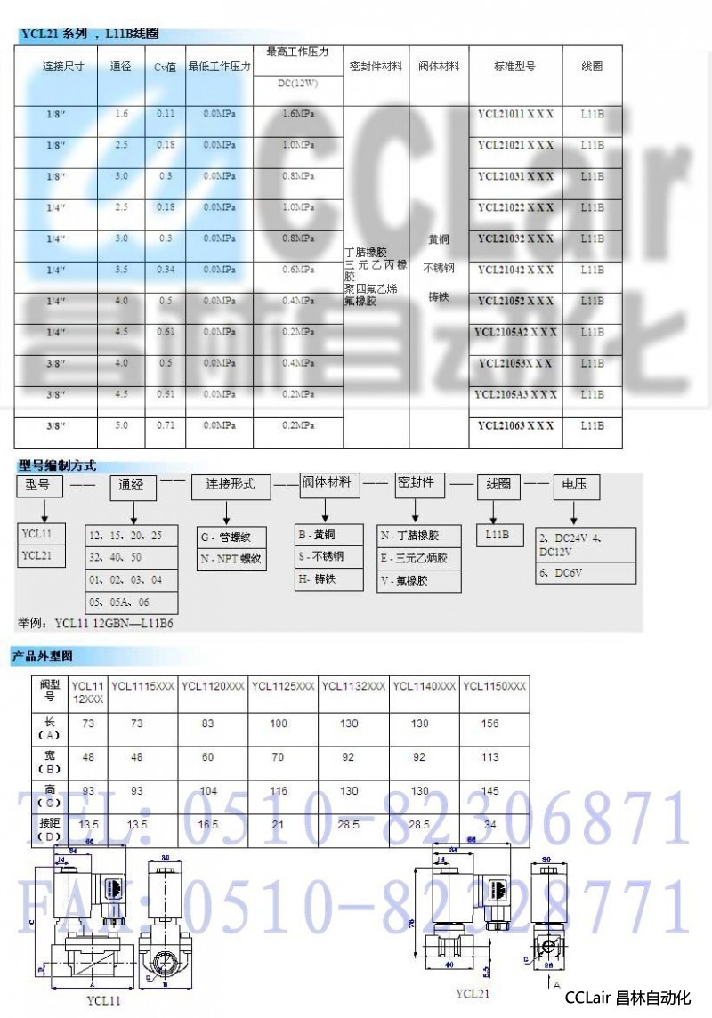 YCL1112,YCL1115, YCL1120, YCL1125, YCL1132, YCL1140, YCL1150,二位二通自保持電磁閥