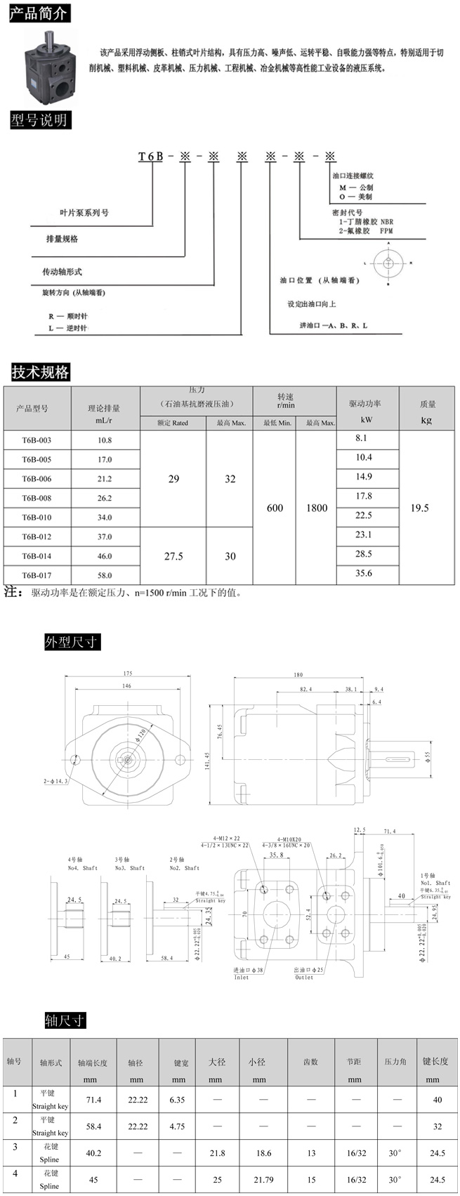 T6B-003,T6B-005,T6B-006,T6B-008,T6B-010,T6B-012,T6B-014,T6B-017,高壓柱銷式葉片泵
