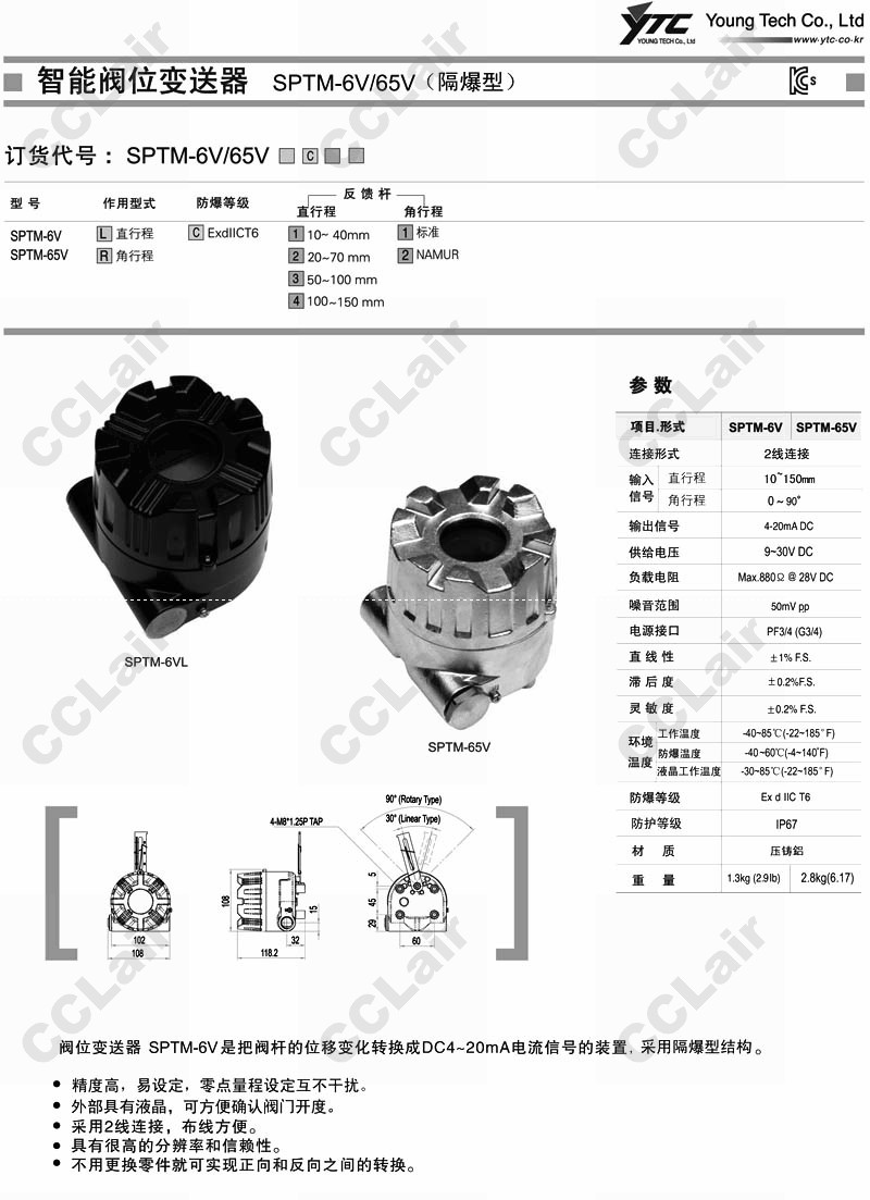 型號(hào): SPTM-6VL,SPTM-65V,YTC智能閥位變送器