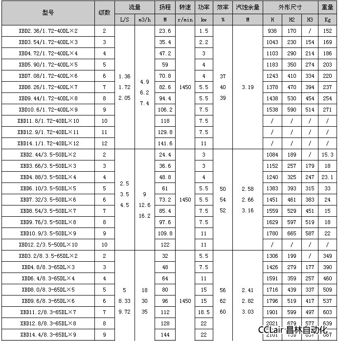 XBD12.9/1.72-40DL×11,XBD14.1/1.72-40DL×12,XBD2.44/3.5-50DL×2,