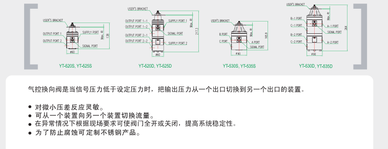 您當(dāng)前的位置:首頁(yè) » 供應(yīng)產(chǎn)品 » YT-520S21,YT-520S22,YT-520S23,YT-520D21,YT-520D22,氣控?fù)Q向閥