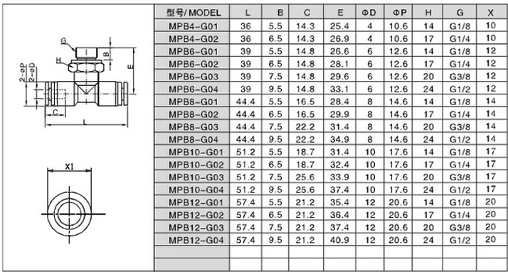 MPB4-G01,MPB6-G01,MPB8-G04,MPB10-G01,MPB12-G01,螺紋三通接頭