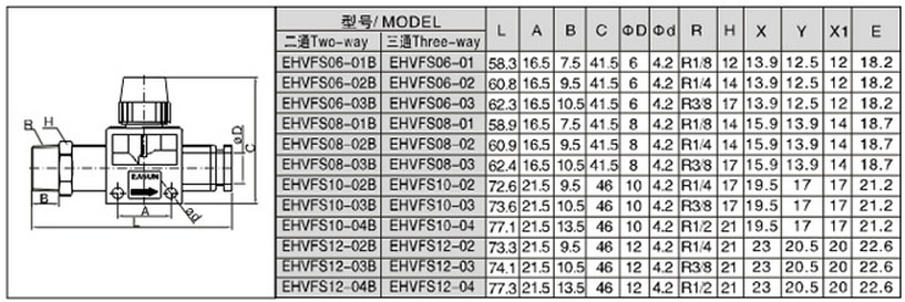 EHVFS06-01,EHVFS08-03,EHVFS10-02,EHVFS12-02,EHVFS06-02,空氣由螺紋端流向插管端接頭