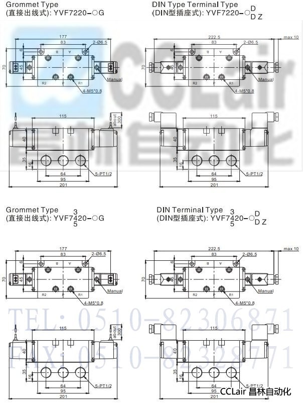 YVF7120,YVF7220,YVF7320,YVF7420,YVF7520,五通先導型電磁閥