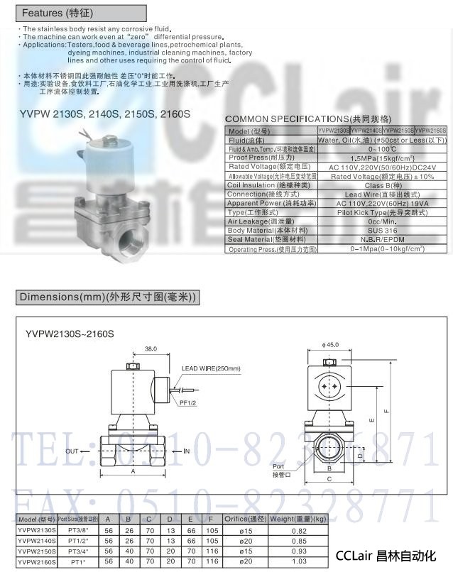 YVPW2130S,YVPW2140S,YVPW2150S,YVPW2160S,先導(dǎo)突跳型2通電磁閥