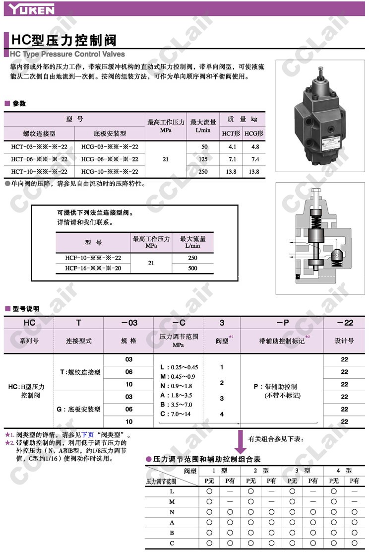 HCT-03,HCT-06,HCT-10,HCT-03-C-1-P-22,HCT-06-C-1-P-22,HCT-10-C-1-P-22,壓力控制閥