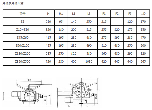Z5,Z10,Z15,Z20,Z30,Z45,Z60,Z90,Z120,Z180,Z250,Z350,Z500,隔爆型電動裝置