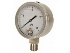 不銹鋼膜盒壓力表參照原膜盒壓力表的結(jié)構(gòu)特點(diǎn)而研制的具有耐腐蝕作用的微壓表。應(yīng)用于鍋爐通風(fēng)和氣體管道等設(shè)備上,在耐腐要求較高的工藝流程中測(cè)量各種氣體介質(zhì)的微壓和負(fù)壓。精確度等級(jí):2.5級(jí)