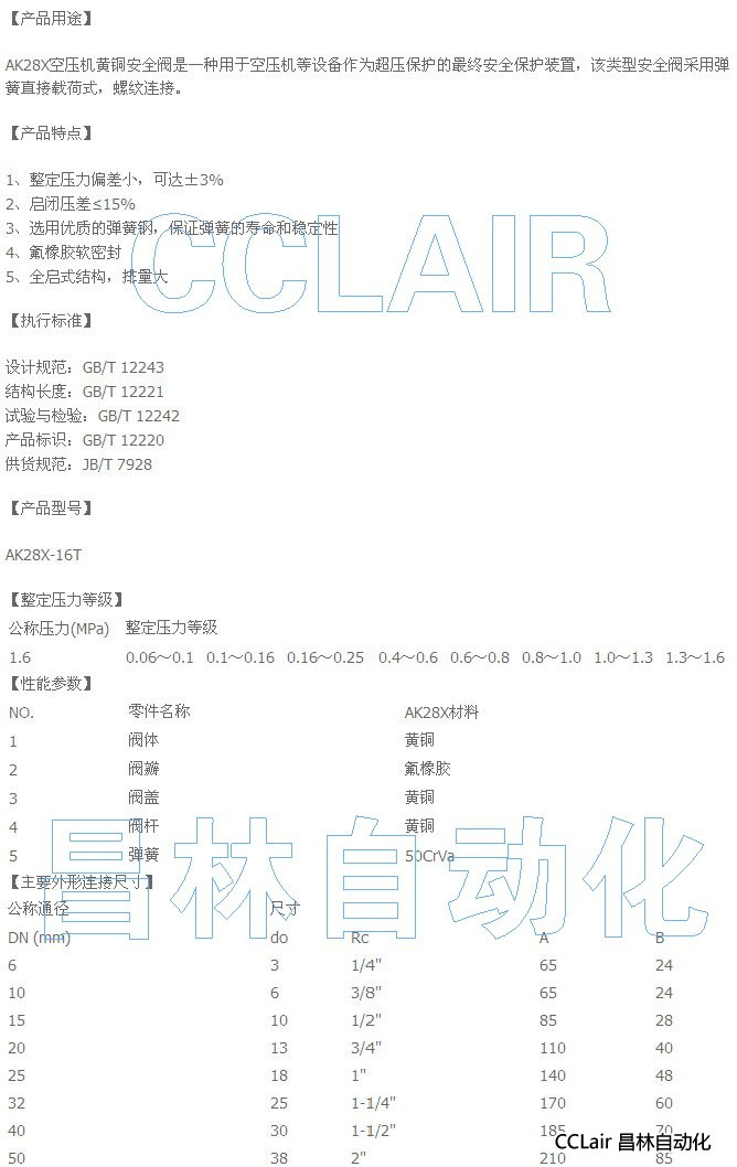 型號(hào): AK28X-16-DN6,AK28X-16T-DN6,AK28X-16-DN10,AK28X-16T-DN10,空壓機(jī)黃銅安全閥
