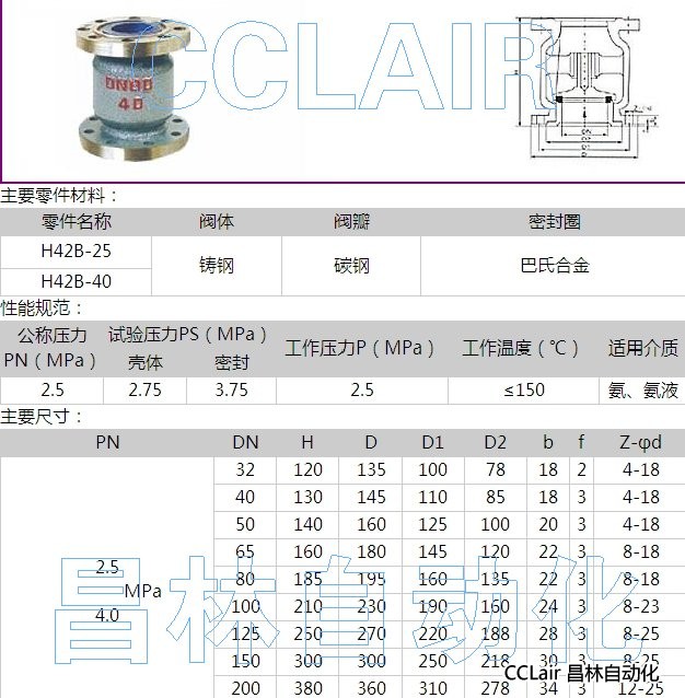 H42B-25-DN32,H42B-25-DN40,H42B-40-DN32,H42B-40-DN40,立式氨用止回閥