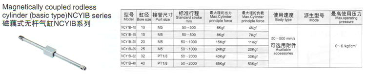 詳細信息 NCY1B-10,NCY1B-15,NCY1B-20,NCY1B-25,NCY1B-32,NCY1B-40,磁藕式無桿氣缸