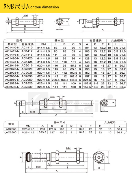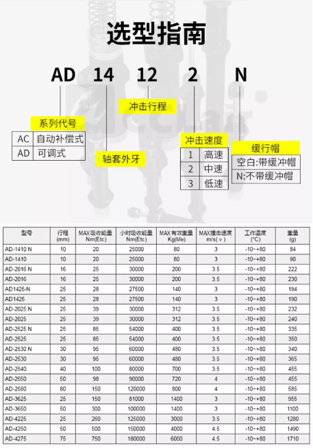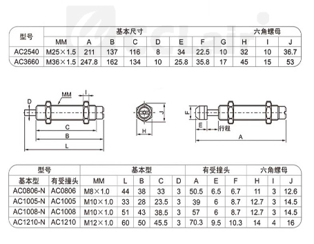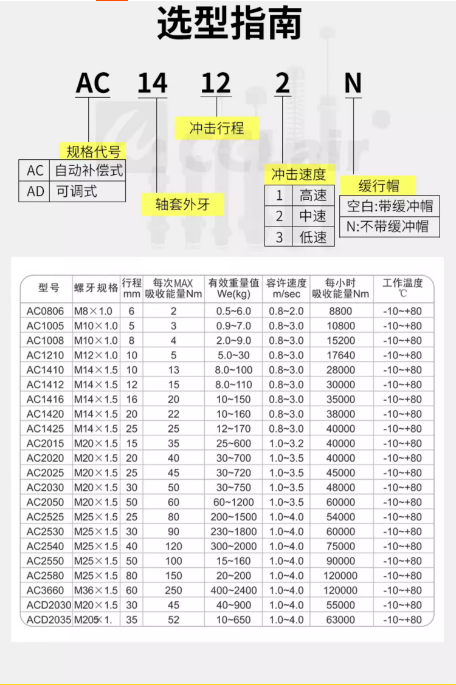 AC0604-2,AC0805-2,AC0806-2,AC1005-2,AC1006-2,AC1007-2,AC1008-2,AC1210-2,AC1215-2,AC1410-2,AC1412-2,AC1415-2,AC1416-2,AC1420-2,AC1425-2,AC1612-2,AC1616-2,AC1620-2,AC1625-2,AC2015-2,AC2016-2,AC2020-2,AC2025-2,AC2030-2,AC2040-2,AC2050-2緩沖器 詳細(xì)信息