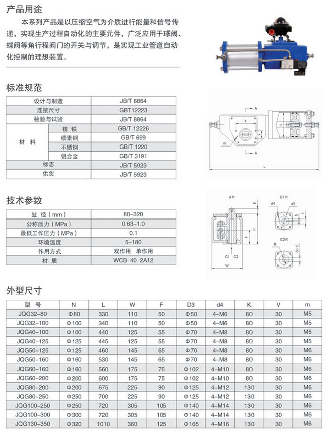詳細(xì)信息 JQG32-80,JQG32-100,JQG40-100,JQG40-125,JQGJQG50-125,角行程氣缸