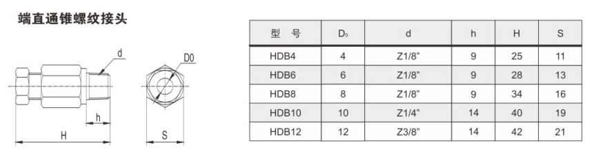 HDB4,HDB6,HDB8,HDB10,HDB12,直通錐螺紋接頭