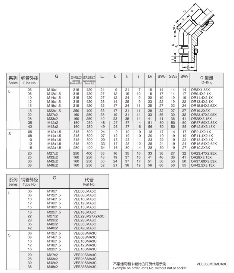 型號(hào): VEE06LMA3C,VEE08LMA3C,VEE10LMA3C,VEE10SMA3C,VEE12SMA3C,直通可調(diào)向接頭